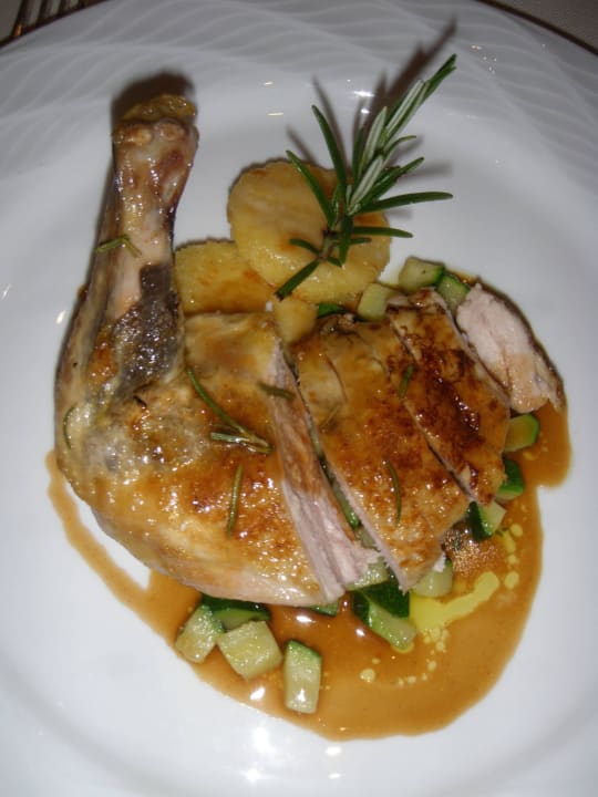 Gebratenes Perlhuhnbrüstchen mit Griessdukaten und Zucchinigemüse