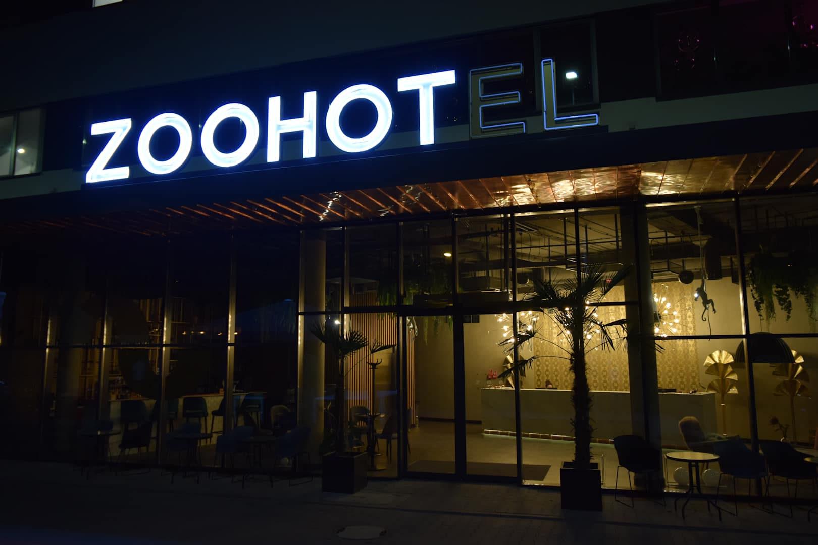Hotel bei Nacht. Zoo Hot. Das EL vom Hotel war schon kaputt...