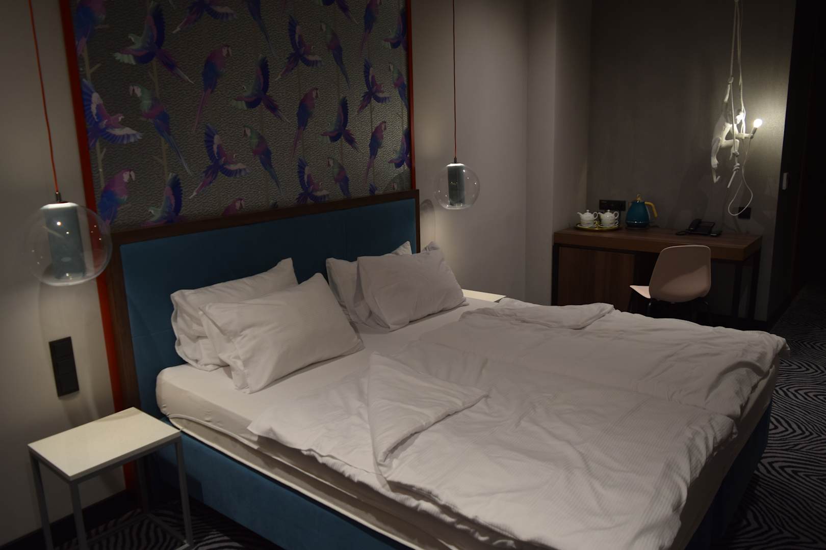 ZimmerUnser Zimmer. Leider nicht wie ausdrücklich per Email im Hotel angefragt mit Dschungel-Deko, sondern nur mit Papagei-Tapete.