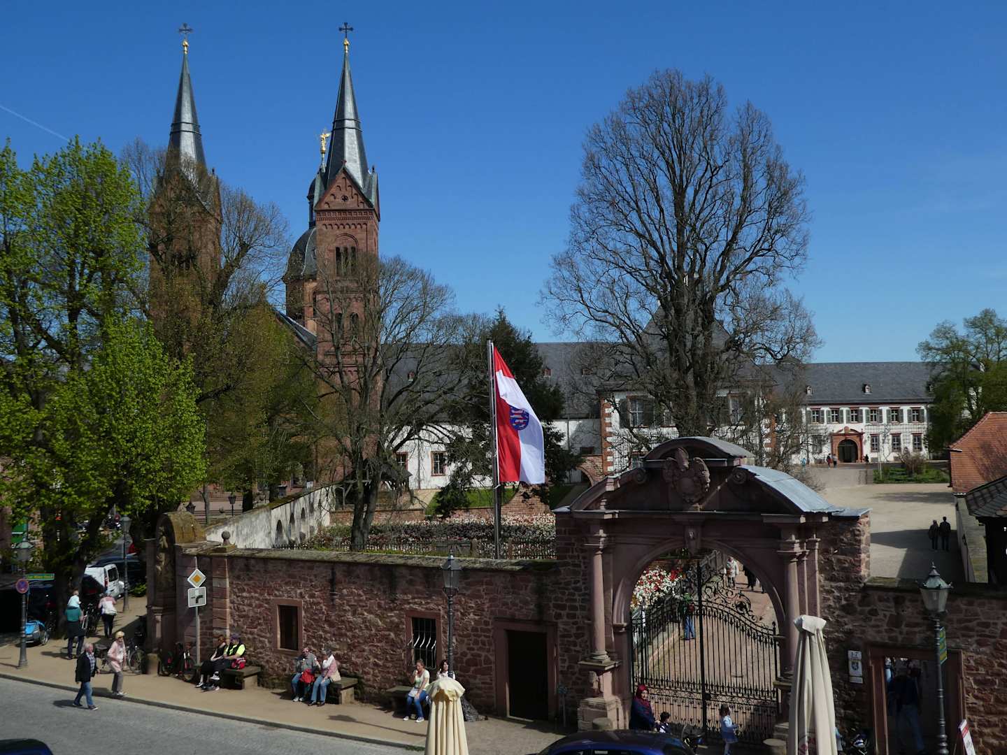 Ausblick auf die Einhardsbasilika und den Garten