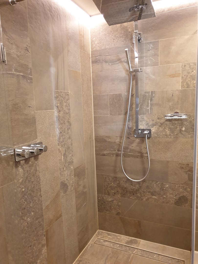 Ebenerdige Dusche mit Regendusche