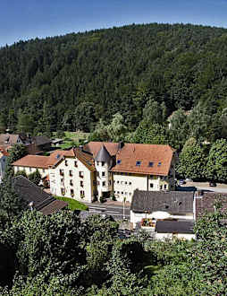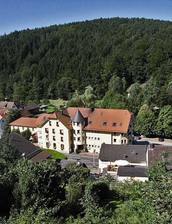 Das Hotel zum Engel im GrünenBlick unweit vom Schloss Mespelbrunn auf das Lieblings-Urlaubshotel zum Engel in Mespelbrunn
