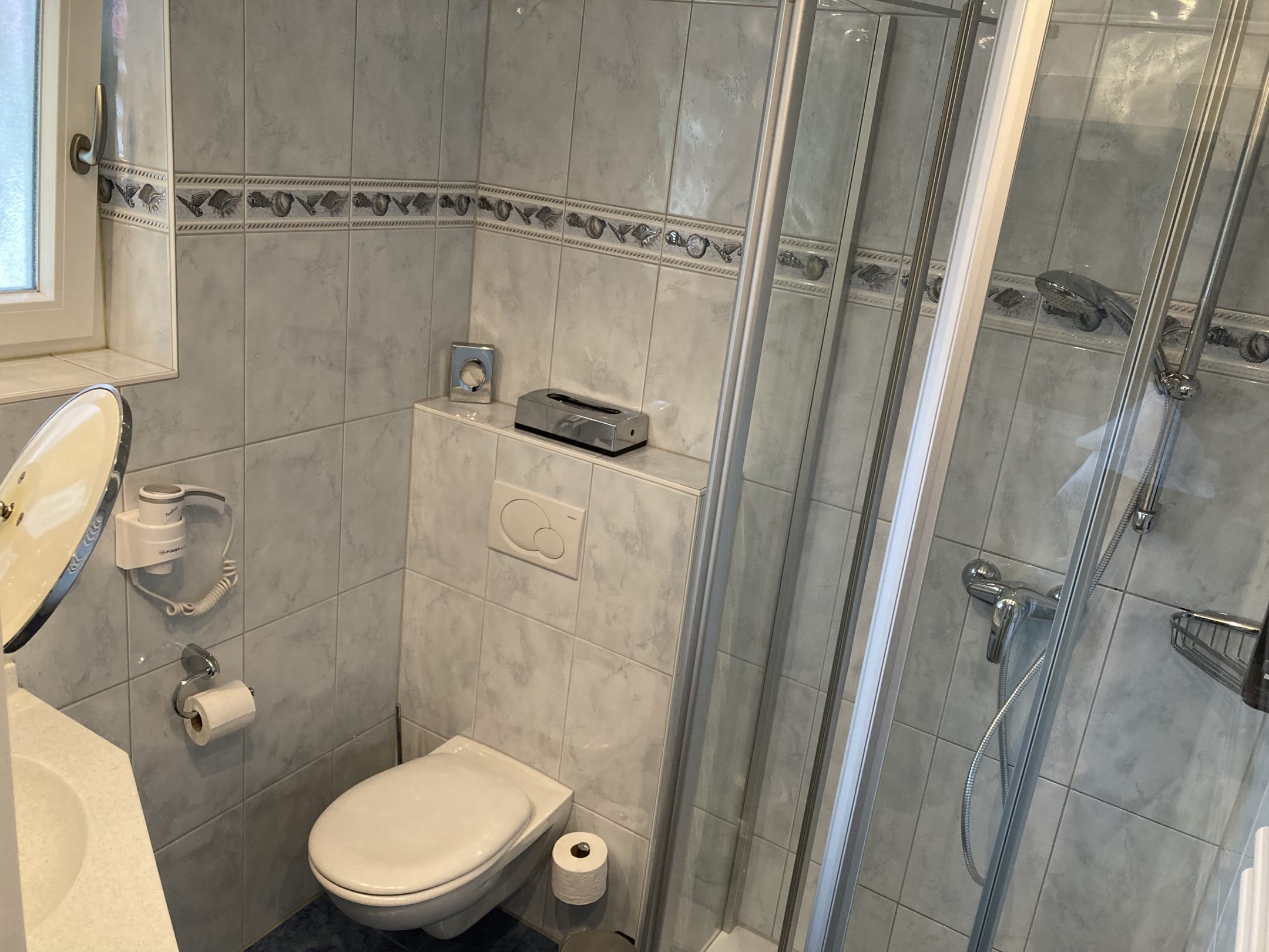 Das Bad ist funktional und nicht sonderlich groß.