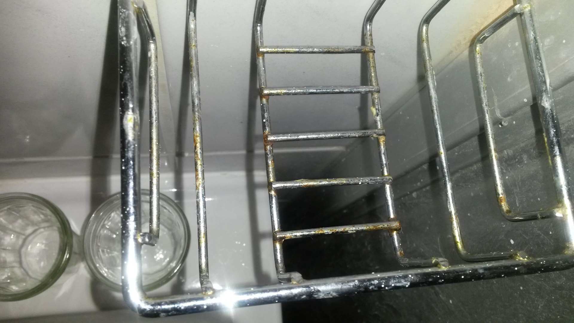 Rostige und schmutze Ablage für die Zahnputzgläser