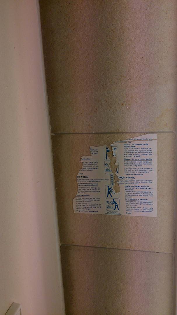 Hinweisaufkleber im Zimmer