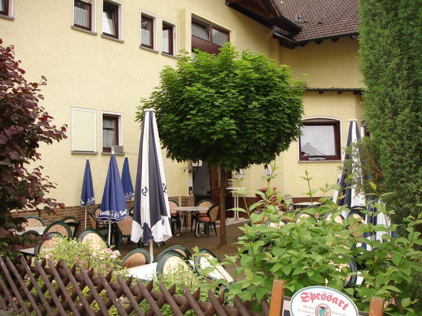 Blick von aussen in den Biergarten