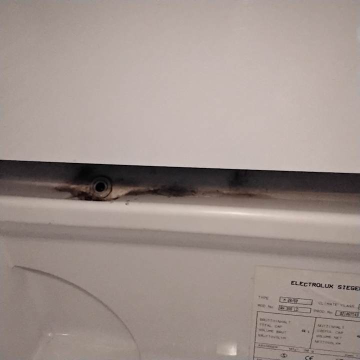 Innenansicht vom nicht funktionierenden Kühlschrank.