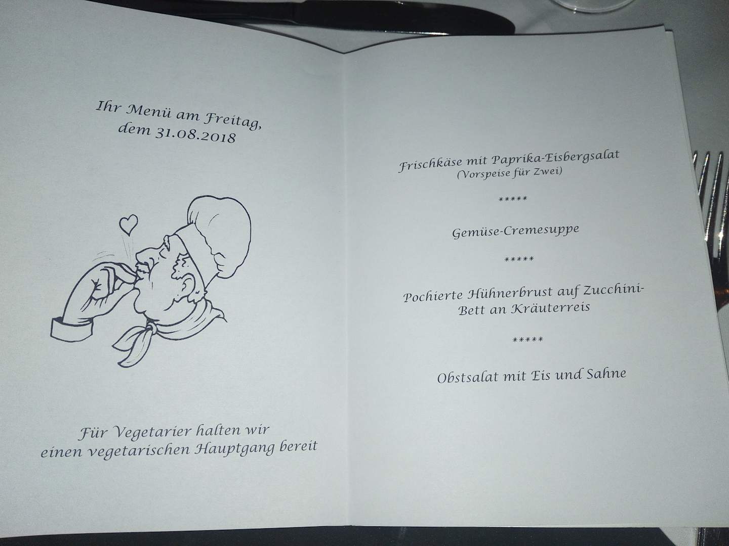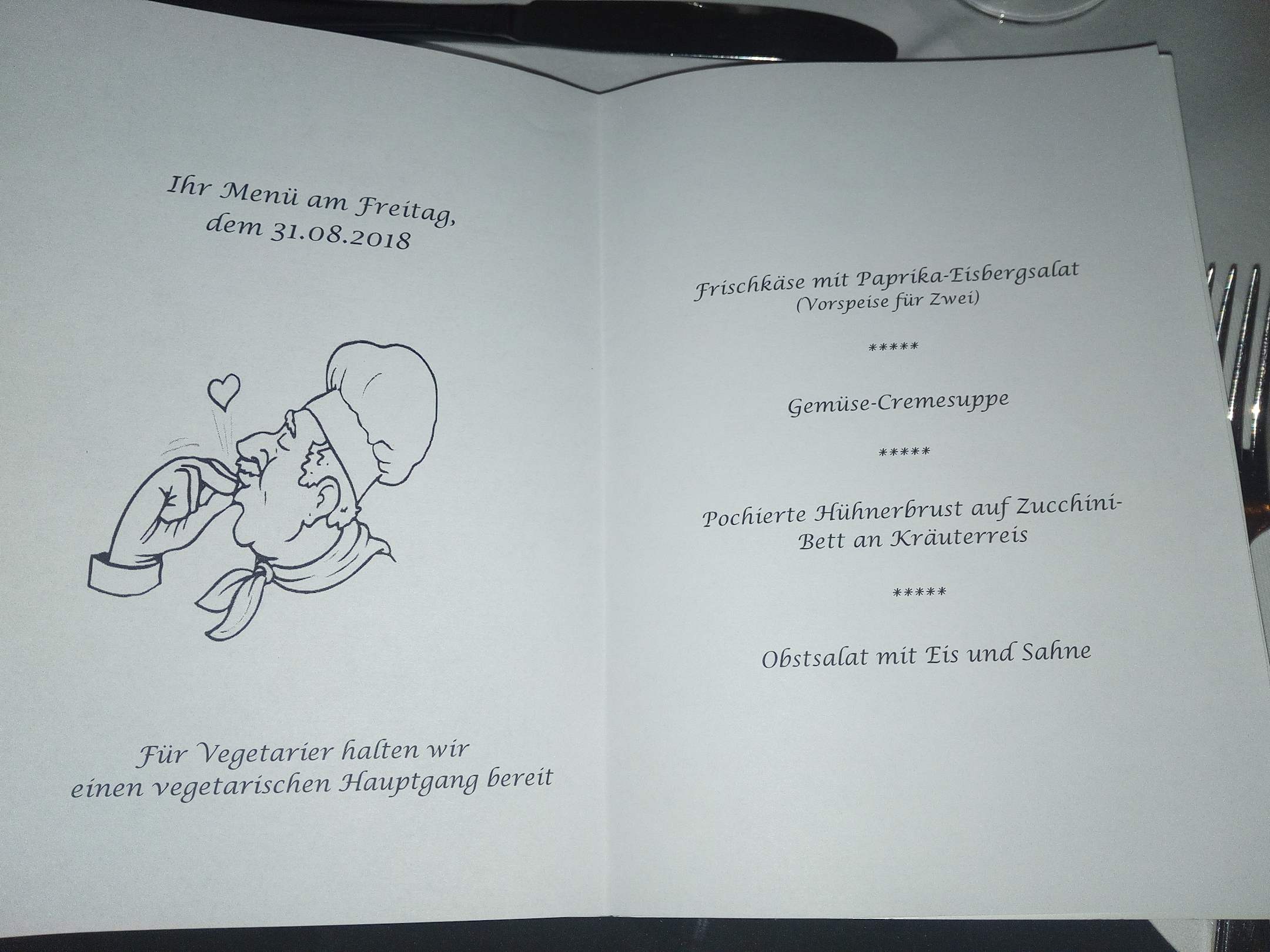 Speisekarte, jeden Tag eine neu gestaltete Speisekarte
