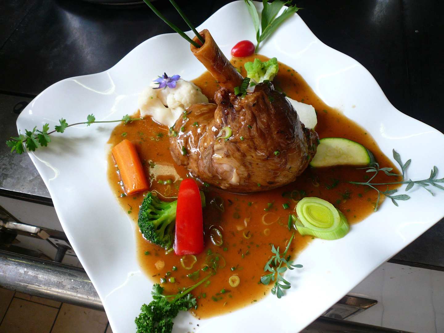 Geschmorte Lammhaxe in Knoblauch- Thymiansoße