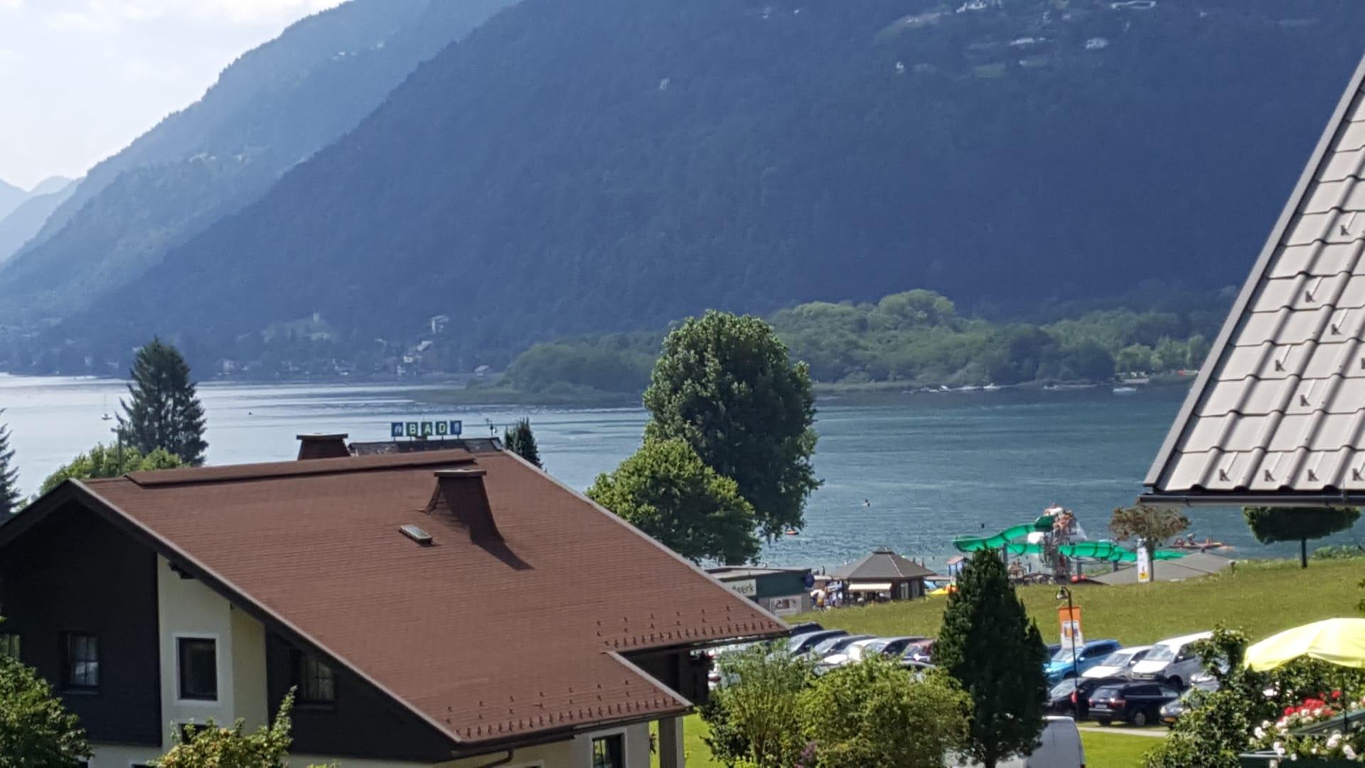 Ausblick vom Balkon auf das Strandbad Ossiach