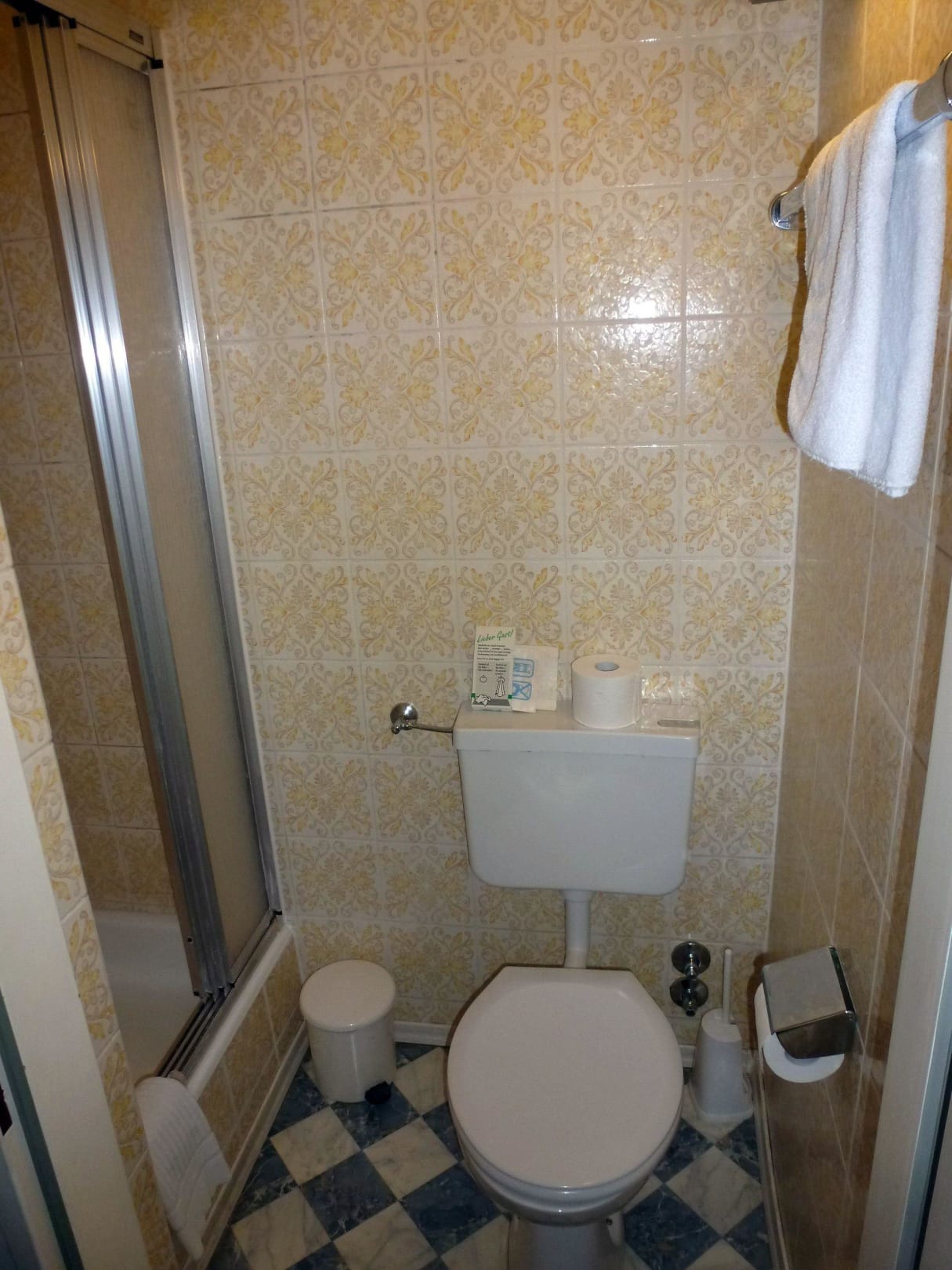 Sehr kleines Bad, daher Waschbecken im Zimmer