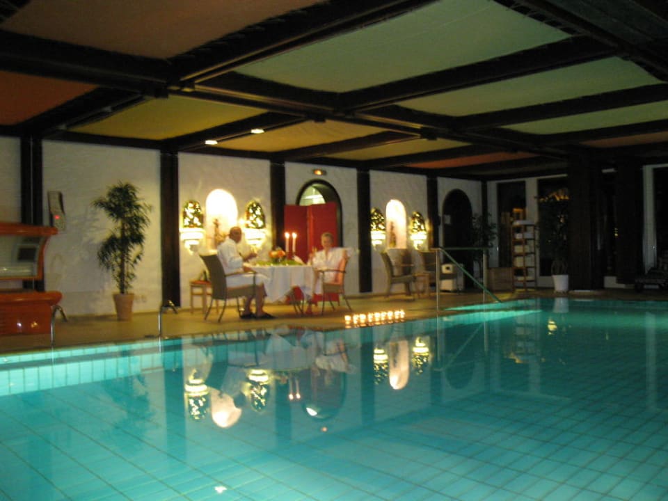 Genuss des 5- Gang- Menues in romantischem, warmen Pool- Ambiente.
