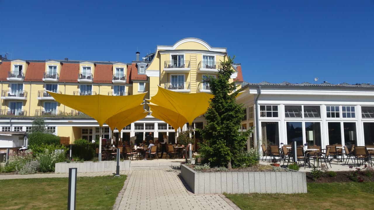 Hotelgarten mit Restaurant