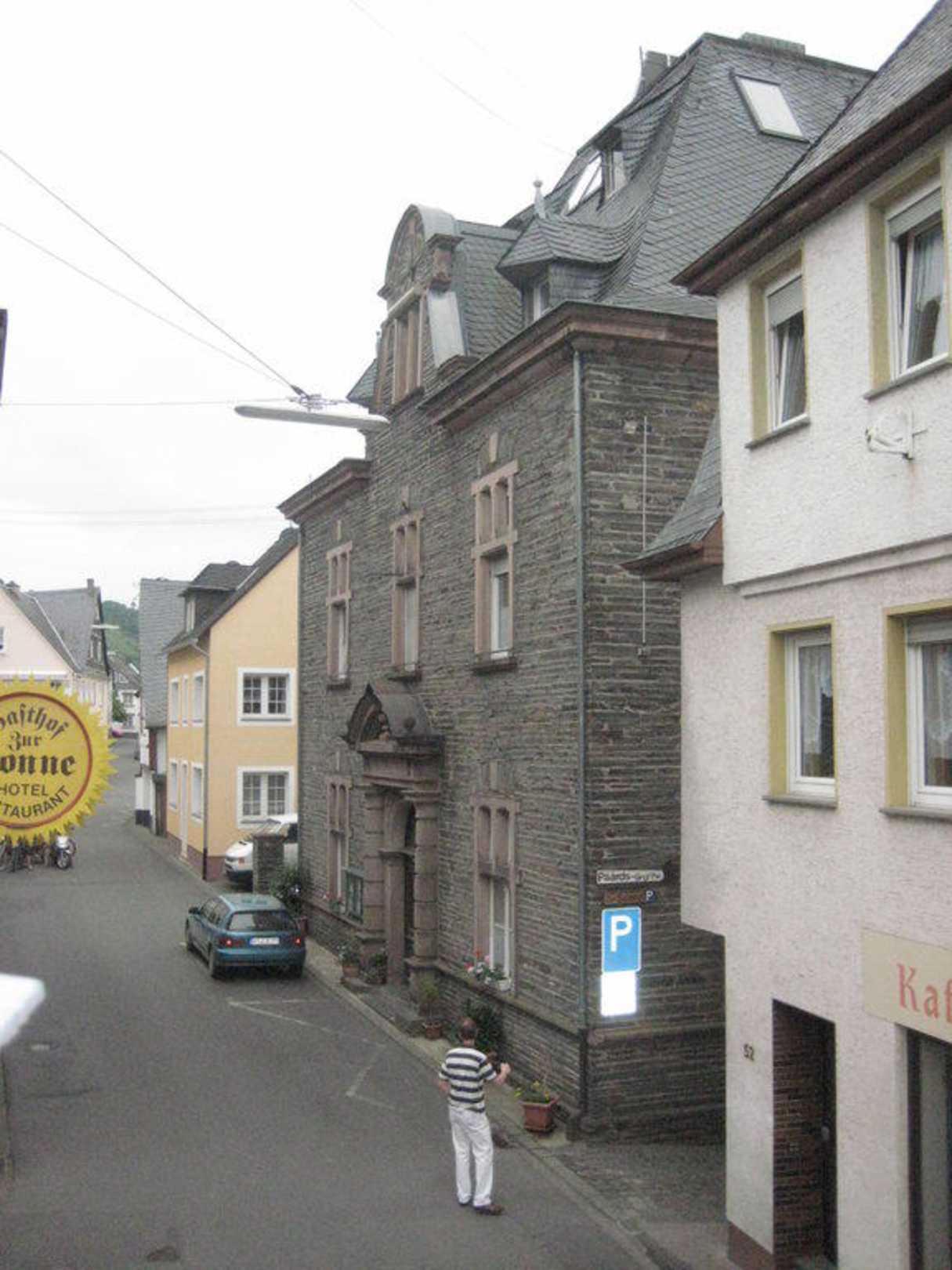 Ausblick von der Pension zum GästehausUrlauber werden in der Pension untergebracht oder in dem Gästehaus - graues Haus -