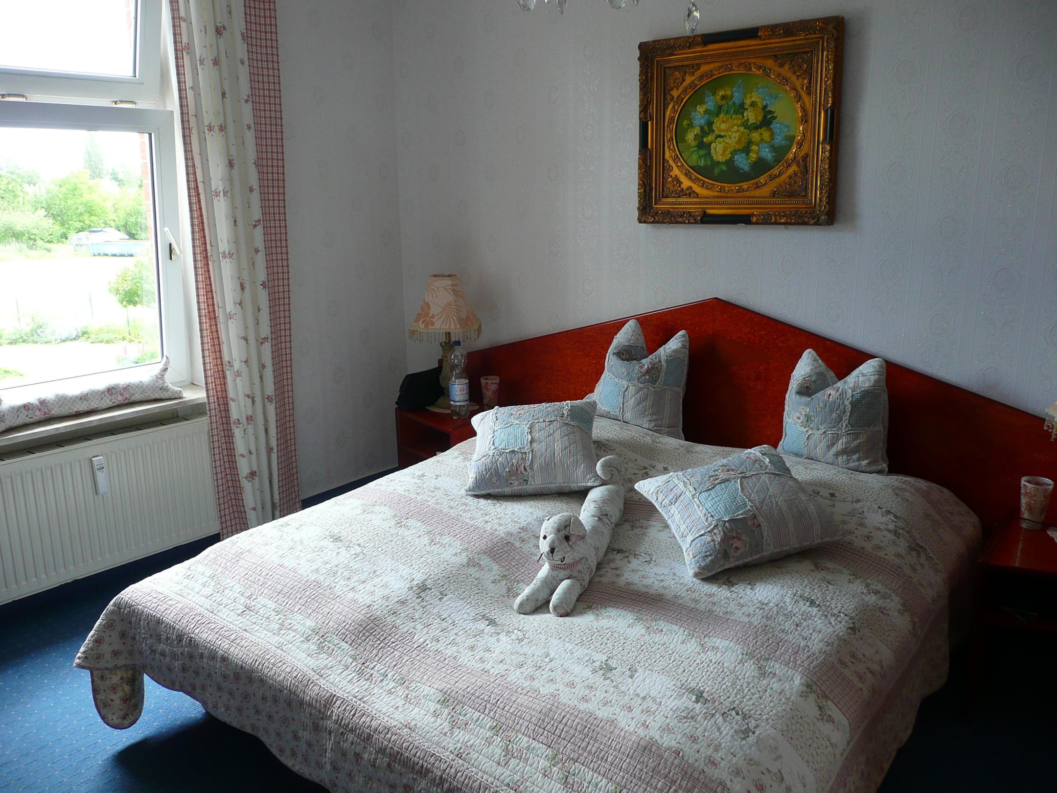 Liebevoll dekoriertes Bett