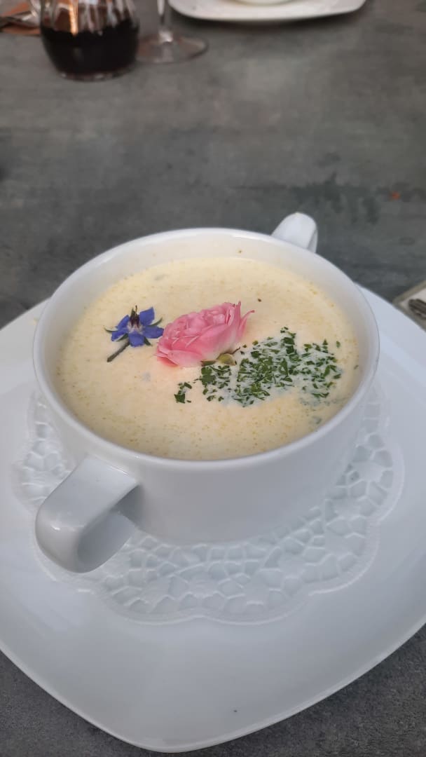 So serviert das Hotel Zwei Linden ihre mega leckere Spreewaldgurken-Suppe.