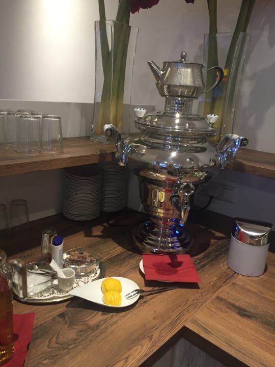 Heißes Wasser für Tee - mit Honig, Zitronenscheiben, Zucker