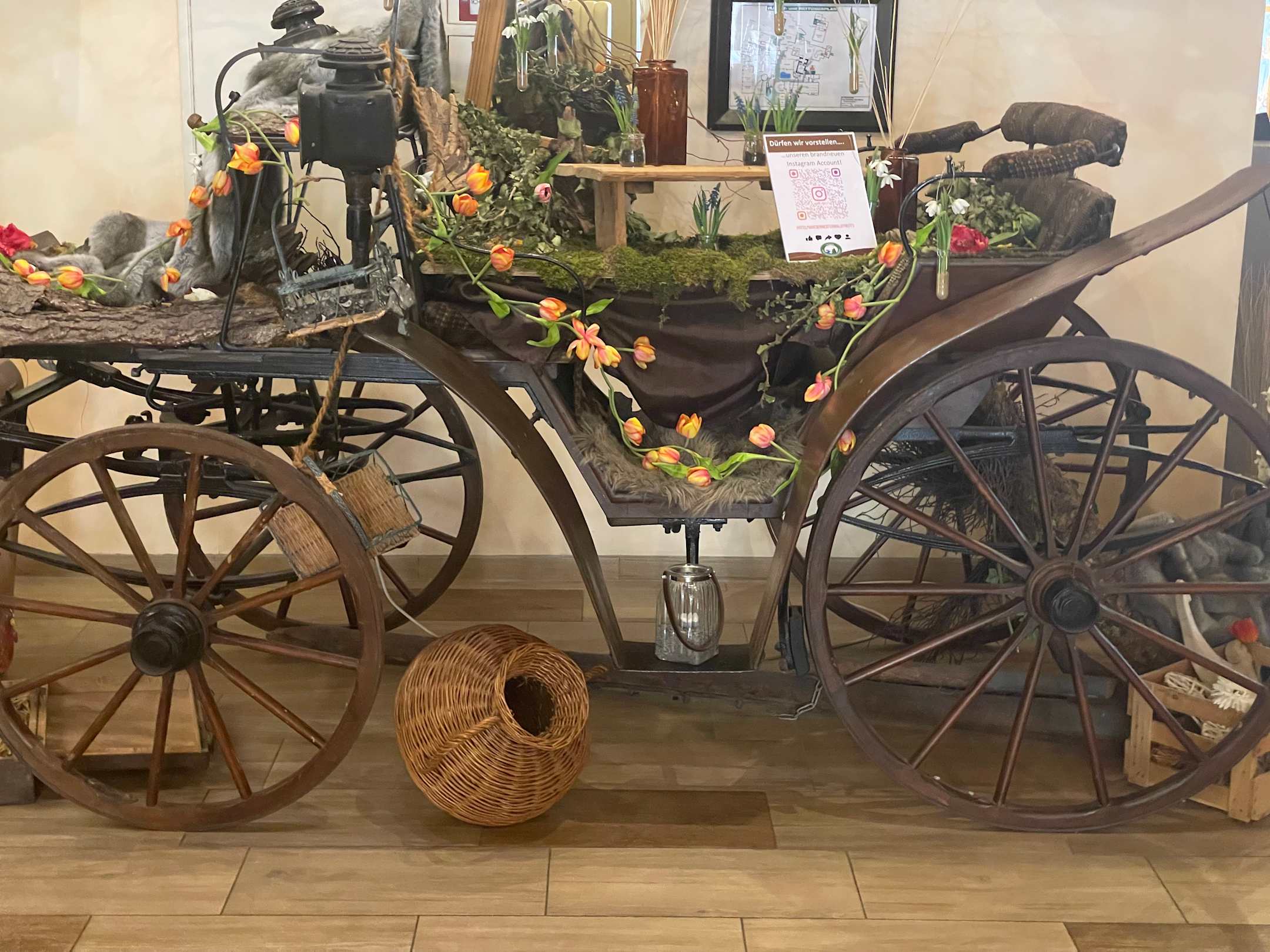 Eine herrlich geschmückte Kutsche im Entree