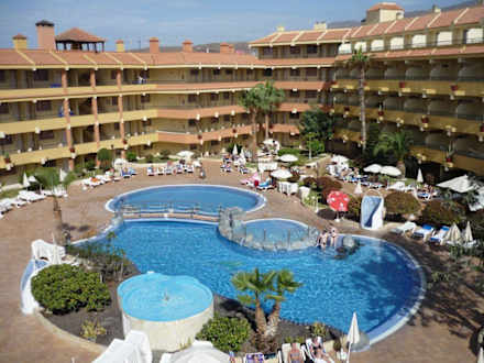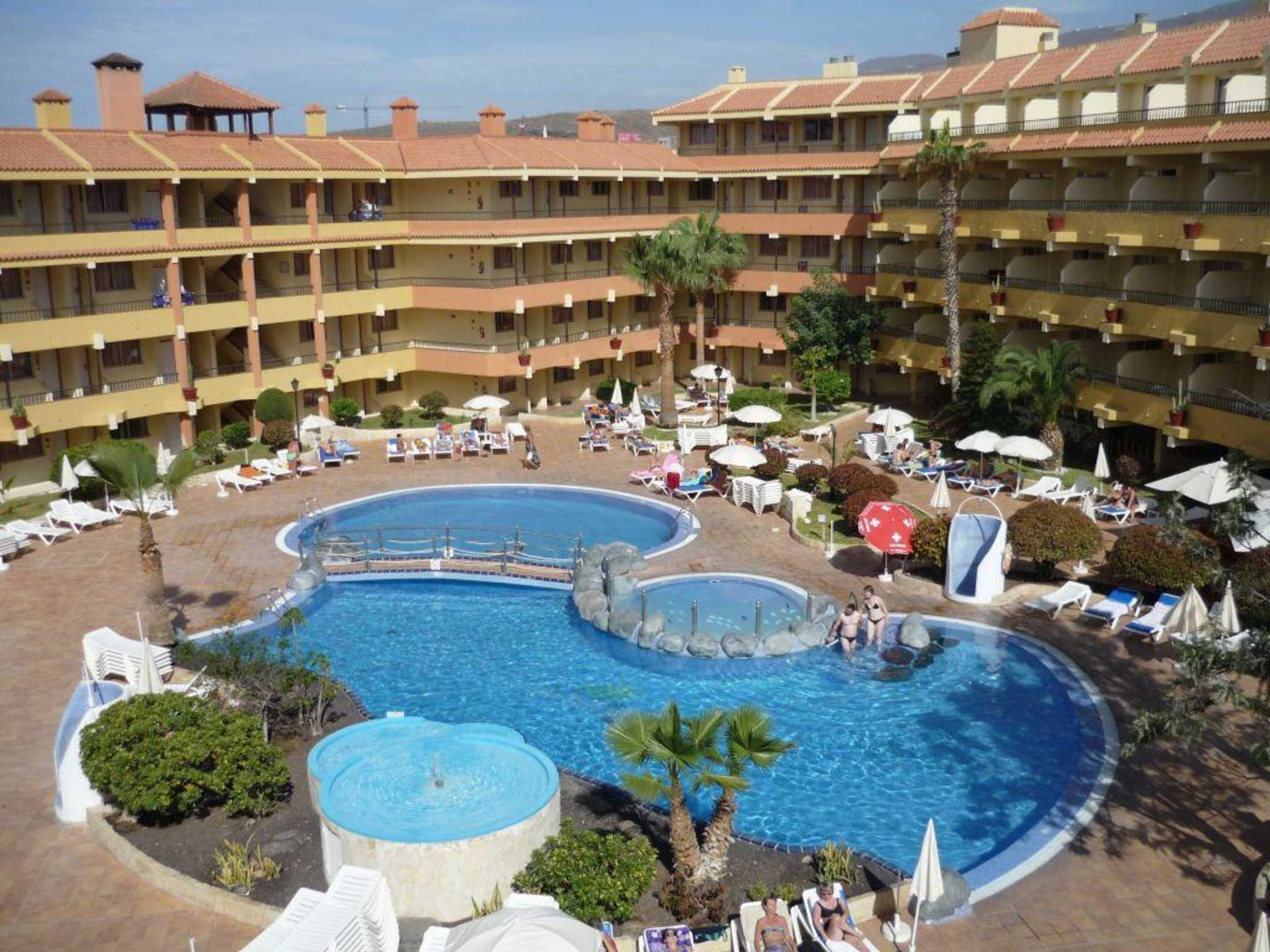 Der Hotelpool wird von 5 Appartment-Fronten umrandet.