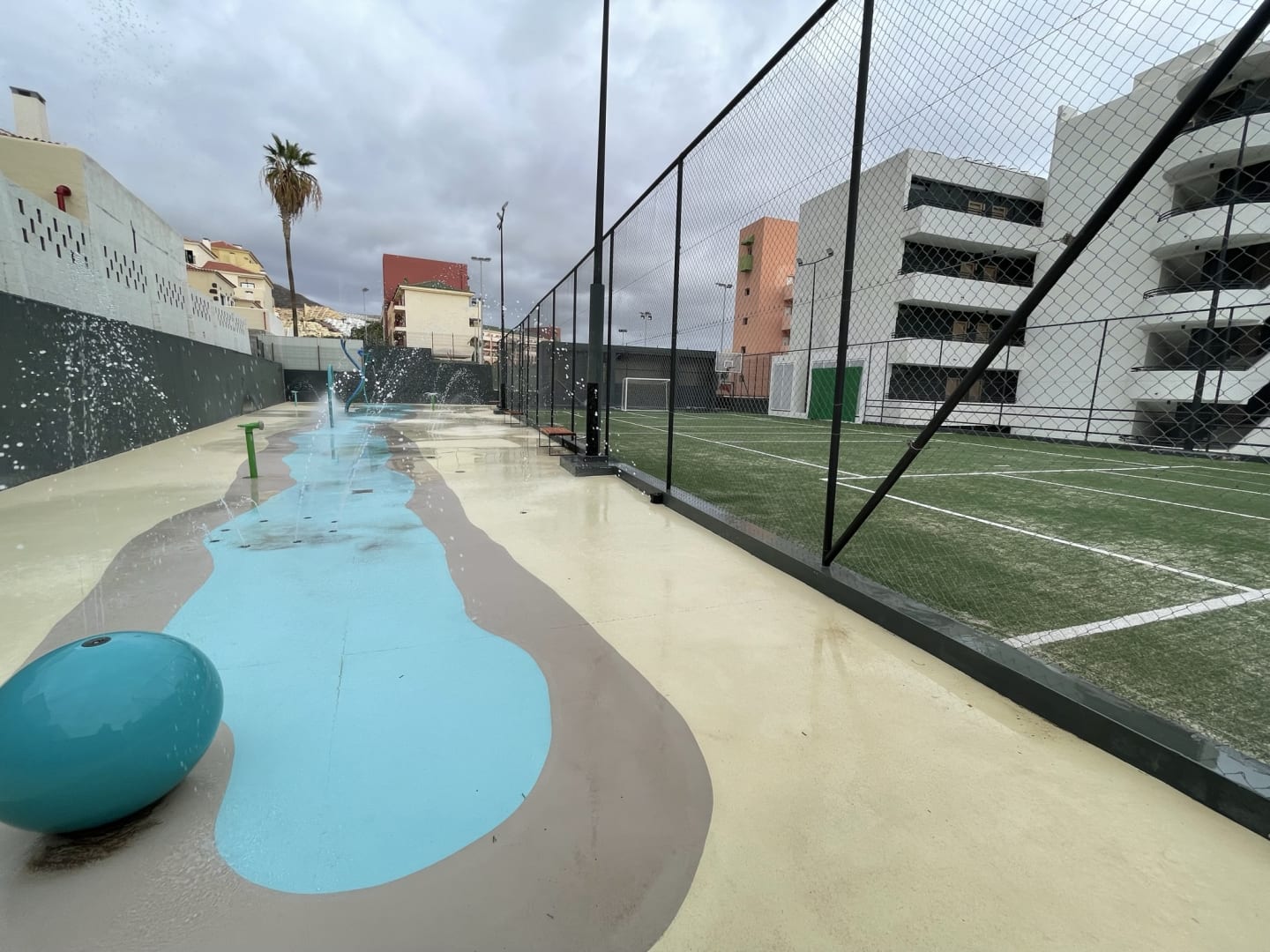 Spielbereich für Kinder und Fußballanlage