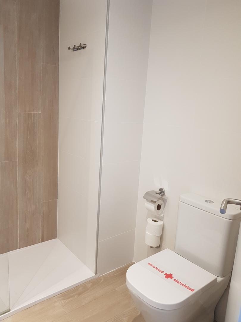 Bad: WC mit großzügiger Dusche, wenig Ablagemöglichkeiten
