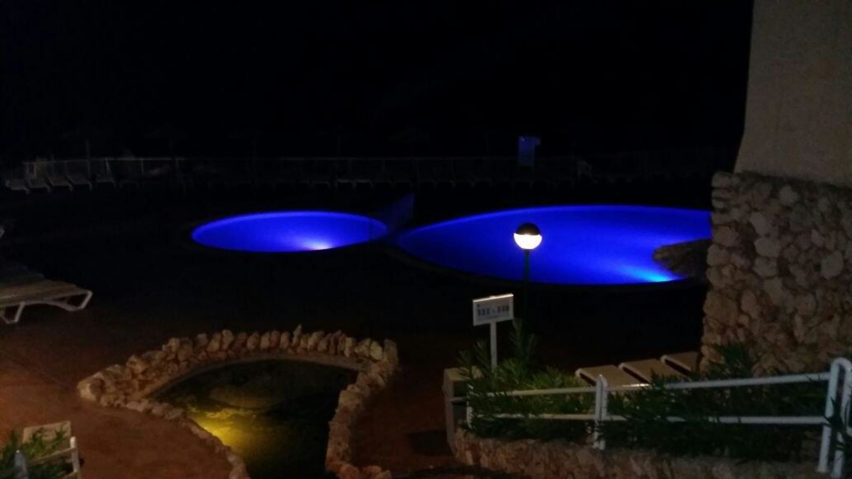 Der Blick auf den Pool bei Nacht