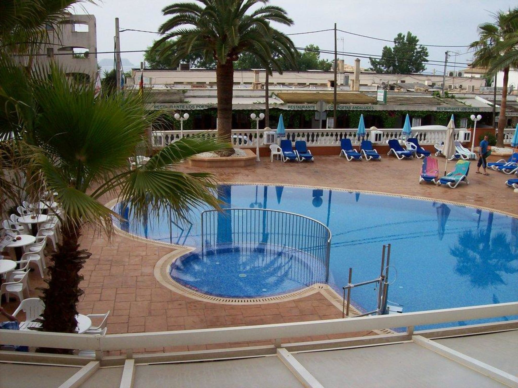Blick vom Vordach, 1. Stock auf die Poolanlage