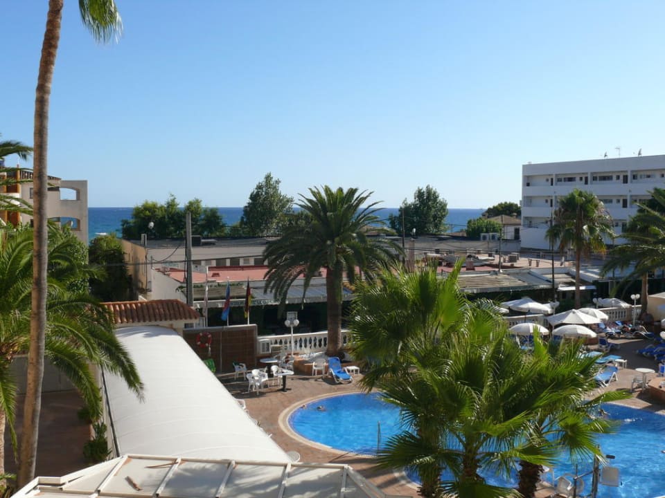 Sicht auf Eingang, Pool und Meer