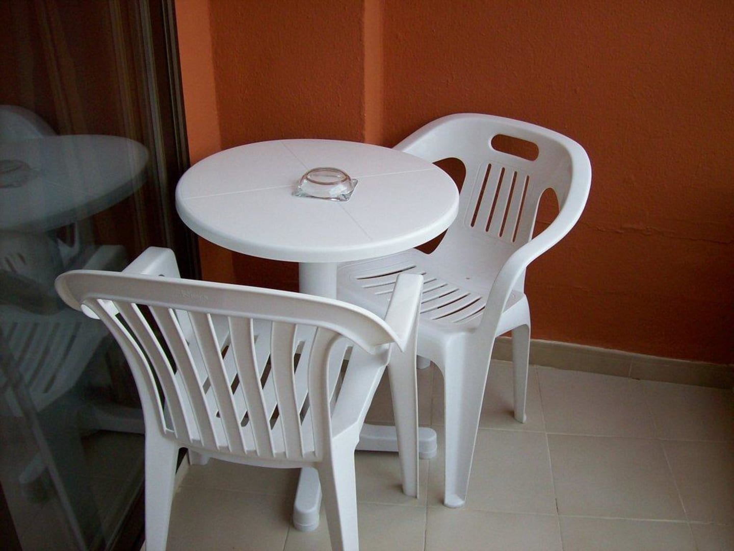 Tisch und Stühle auf dem Balkon