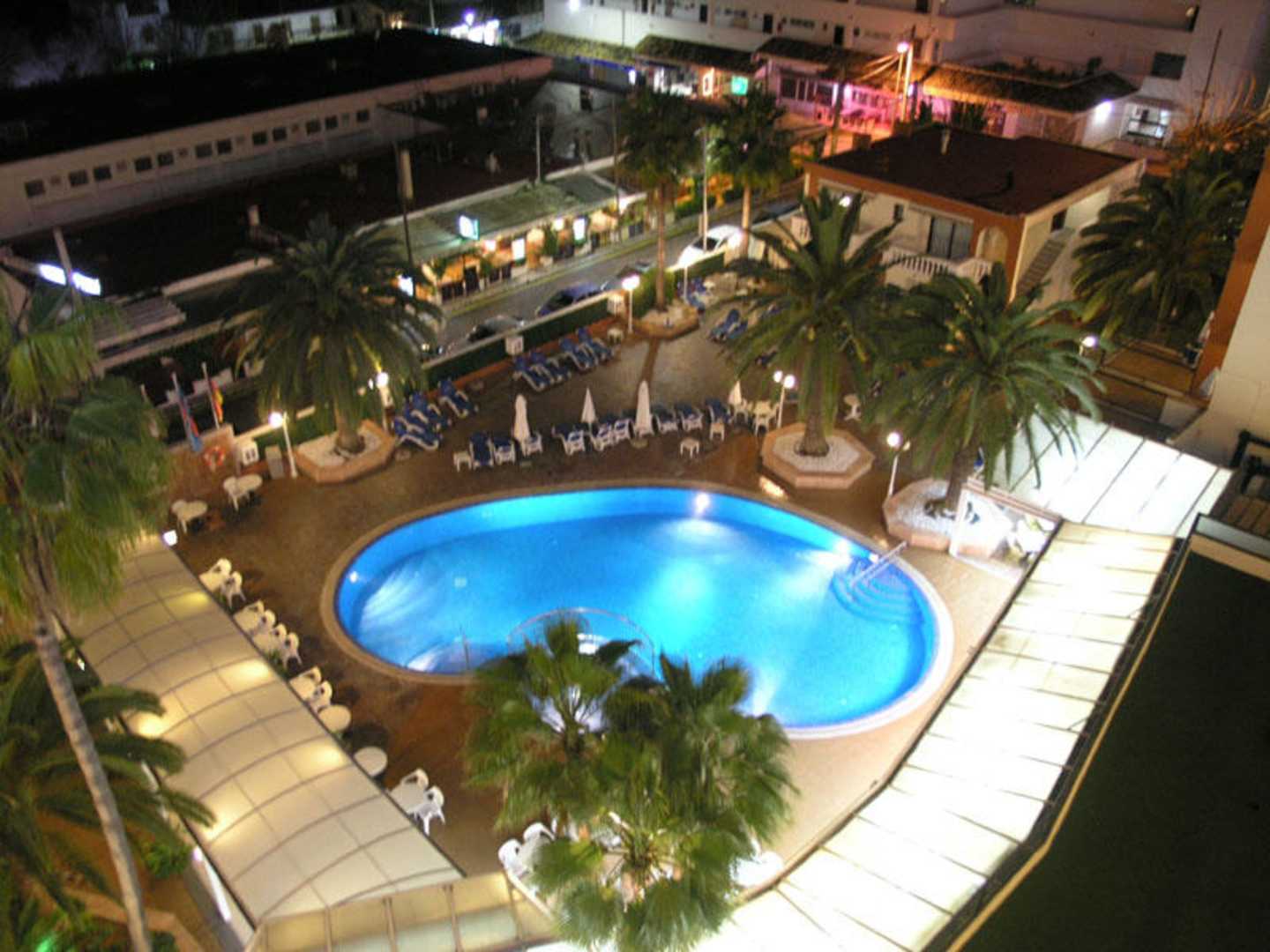 Blick auf die Poolanlage ohne Schnee