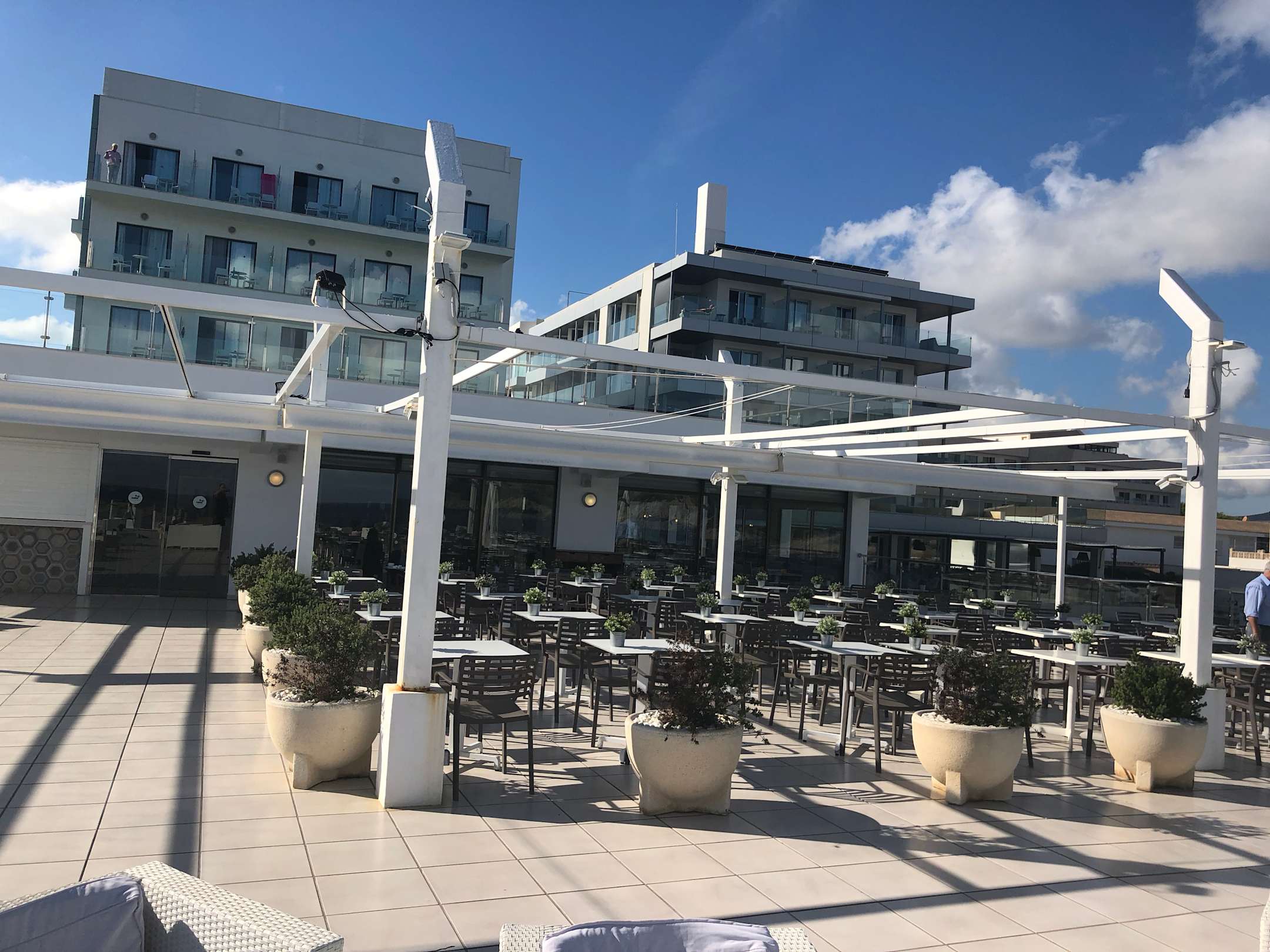 Blick von der Hotelterrasse Richtung Meerblick Zimmer