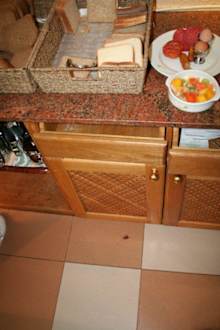Man beachte das niedliche Tierchen auf dem Boden. Haben es noch mehrfach fotografiert - auch beim Versuch, unter einer Türe ins Hotelzimmer vorzudringen. IGITT!!!