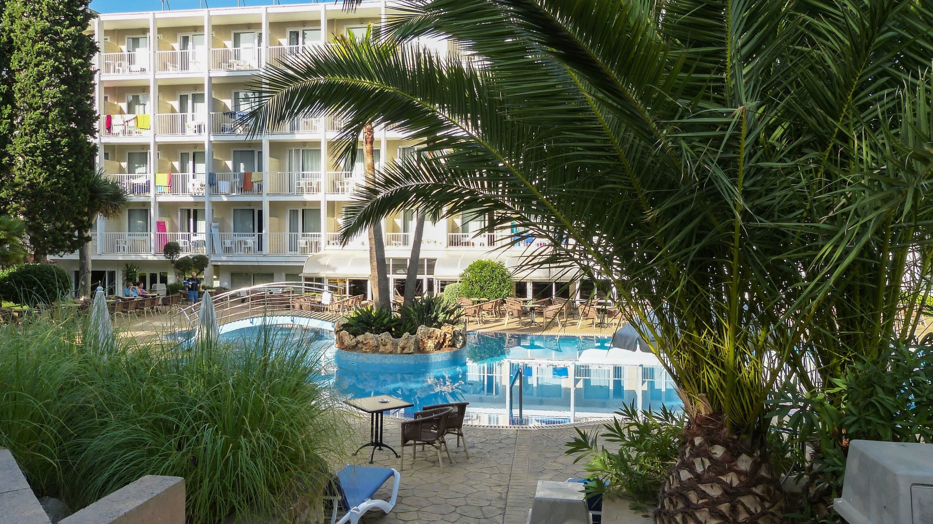 Blick auf Pool und Hotel