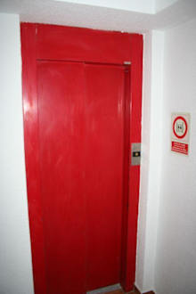 In den winzigen Aufzug passt max. ein Buggy mit einer Person