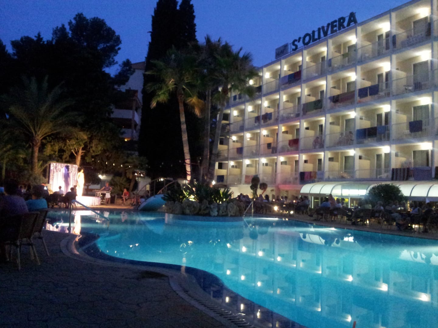 Pool und Hotel am Abend