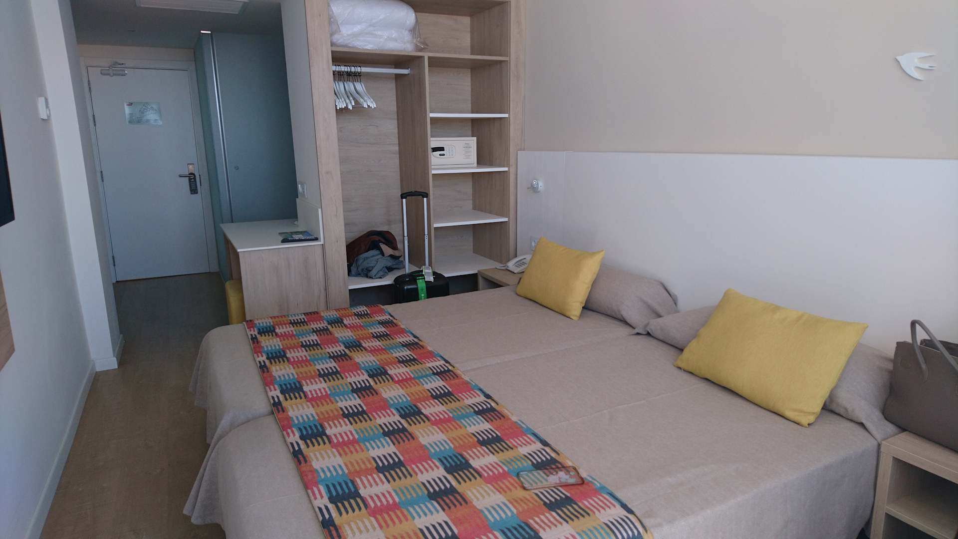 ZimmerDoppelzimmer. Hinter dem Schrank befindet sich das Badezimmer mit getrennter Dusche und Toilette.