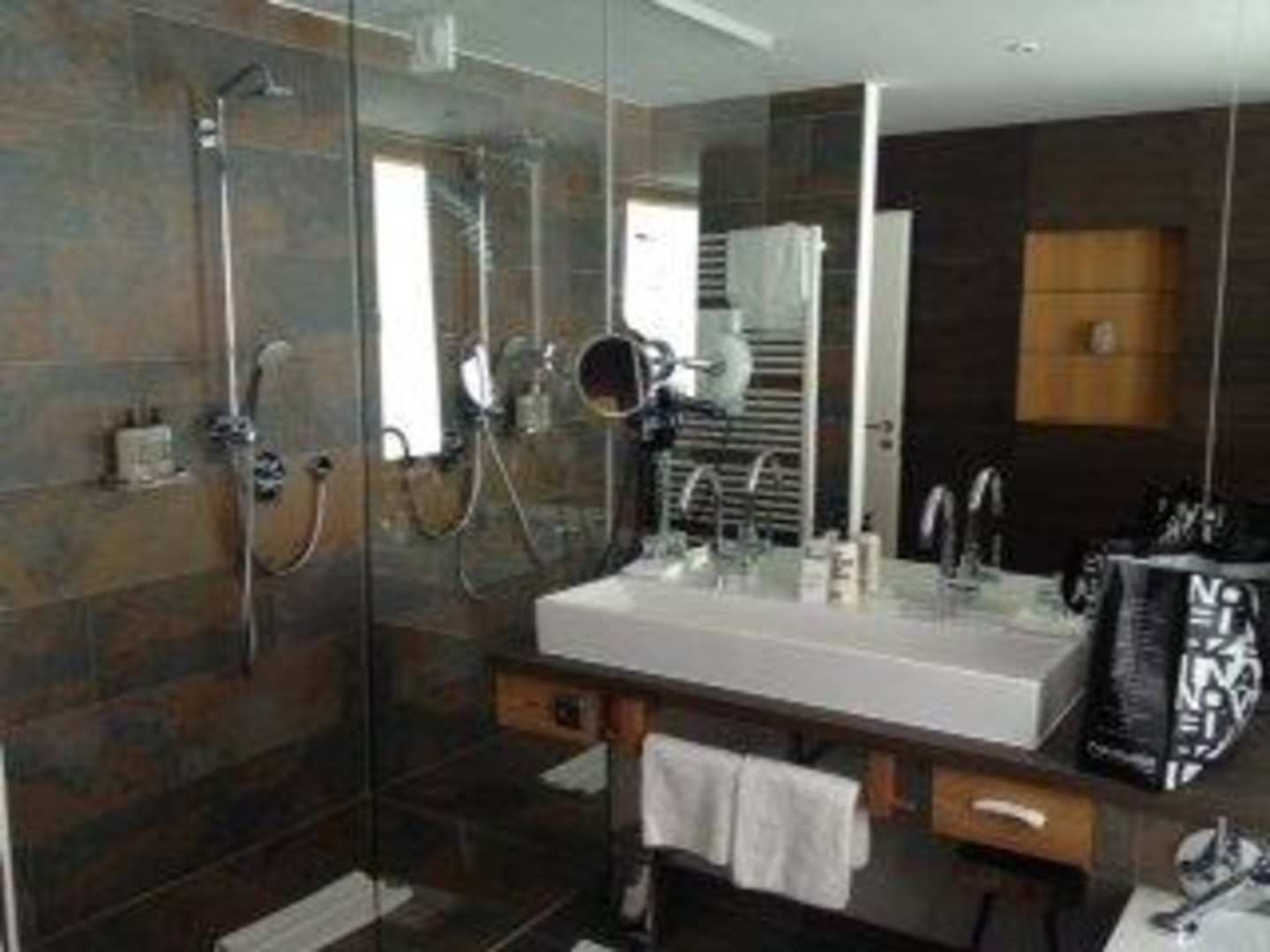 Offene Dusche mit Glastrennwand