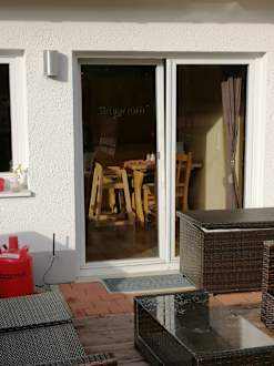 Von der Terrasse ins Restaurant