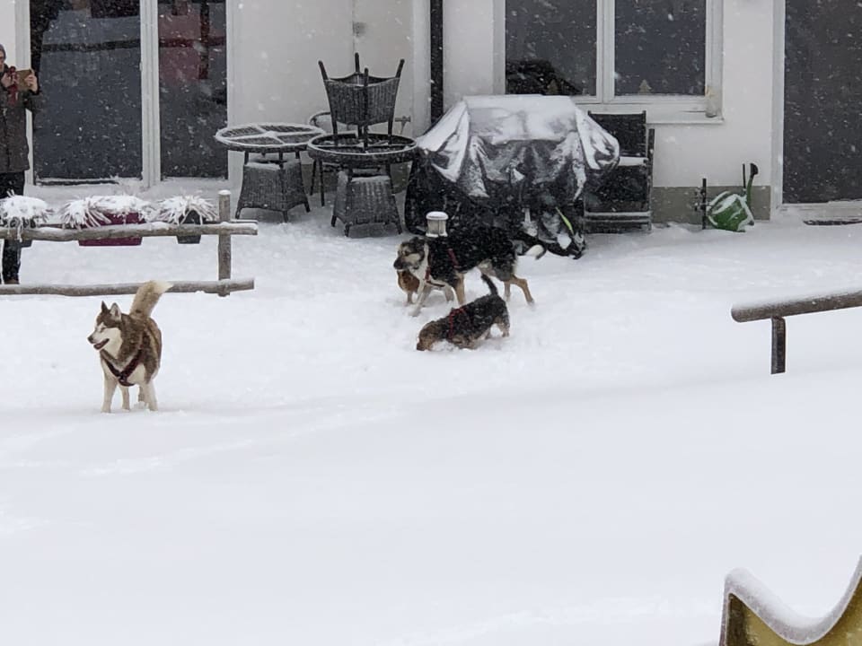 Hunde beim Spielen im Schnee