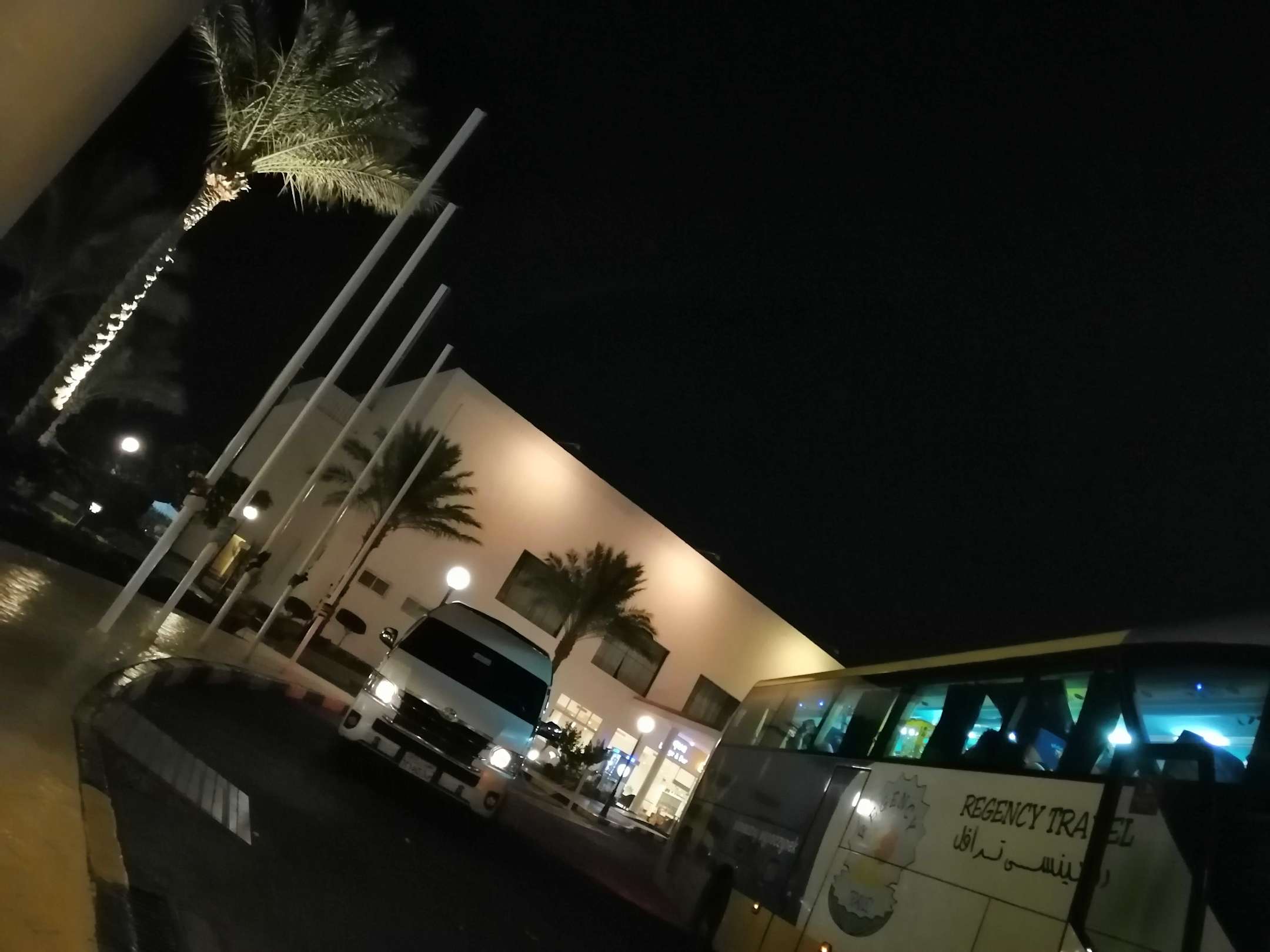 An und Abfahrt von Taxis und Reisebussen vor der Lobby