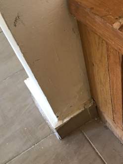 Putz fällt von der Wand, rissig, schimmelig