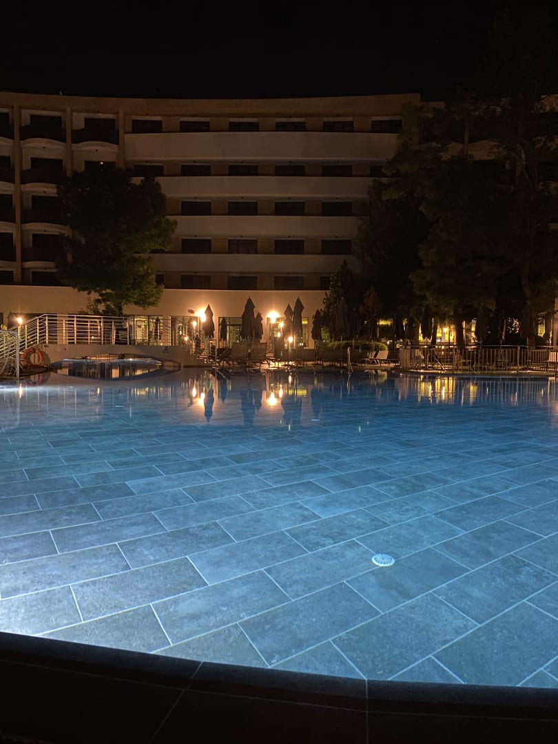 Pool mit Blick auf das Hotel