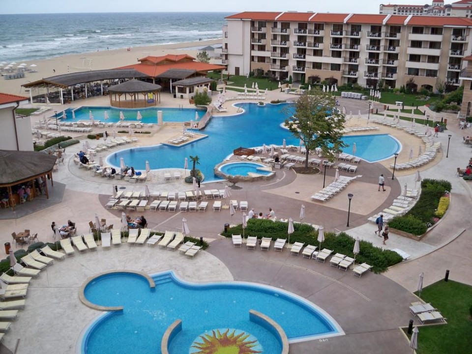 AussichtBlick vom Zimmer auf den Pool und das Meer.