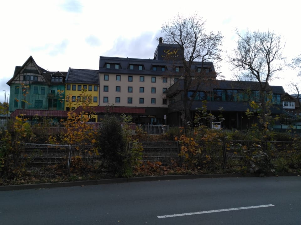 Blick aufs Hotel vom Bahnhof