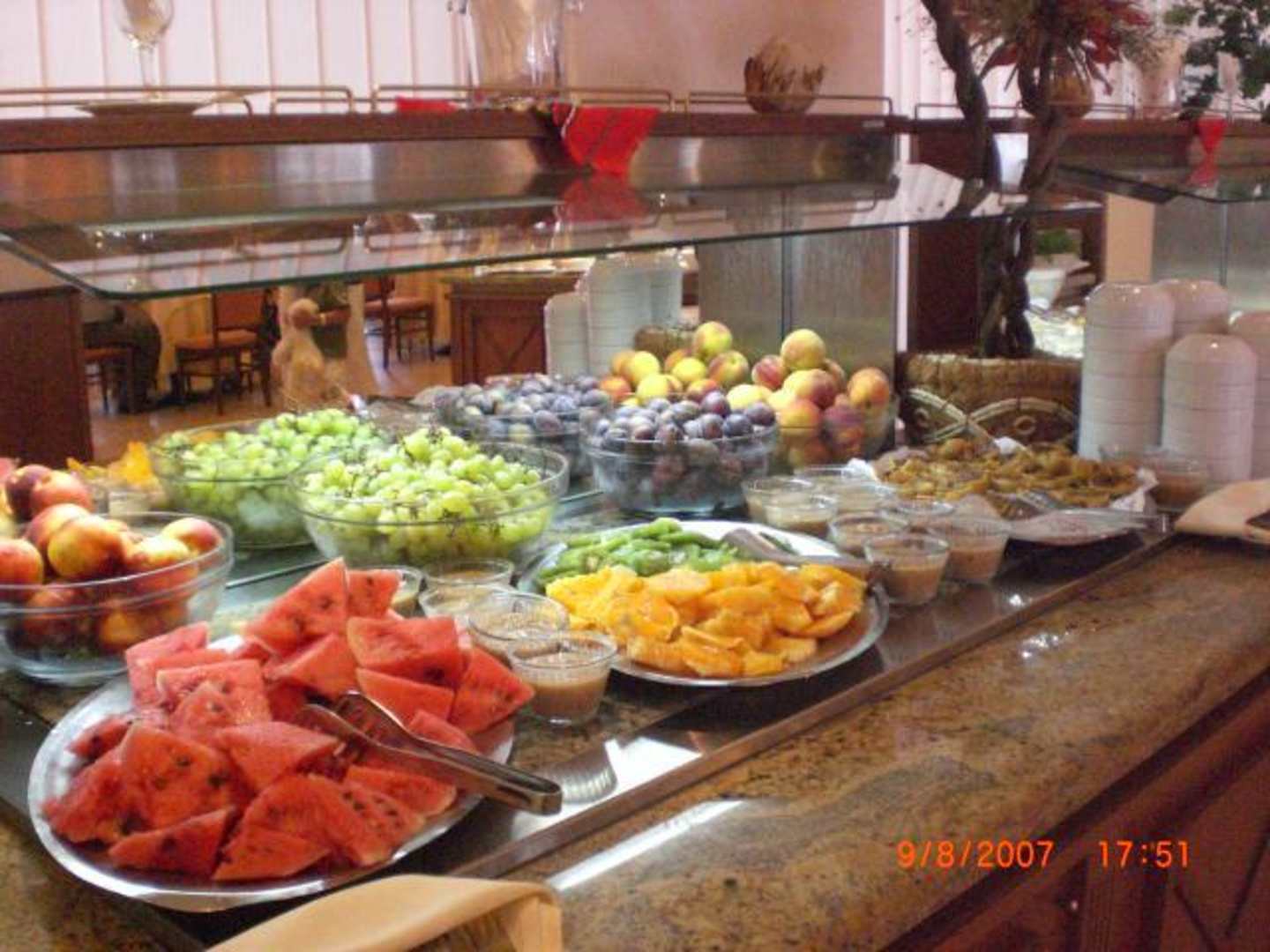 Nachspeisen - BuffetLinks von dem Bild gab es selbstgemachtes Eis vom Hotel, auf dem Bild selber sieht man das Obstangebot mit Wassermelonen, Zuckermelonen, Kiwi, Pfirsiche, Orangen usw. und rechts neben dem Bild gab es noch ein süßes Nachspeisenbuffet, wo man Torte, Kuchen, Pudding usw. bekam. Essen war hervorragend!