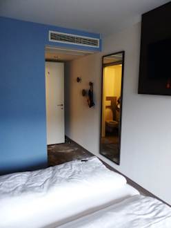 Blick vom Zimmer zum Eingang mit AC