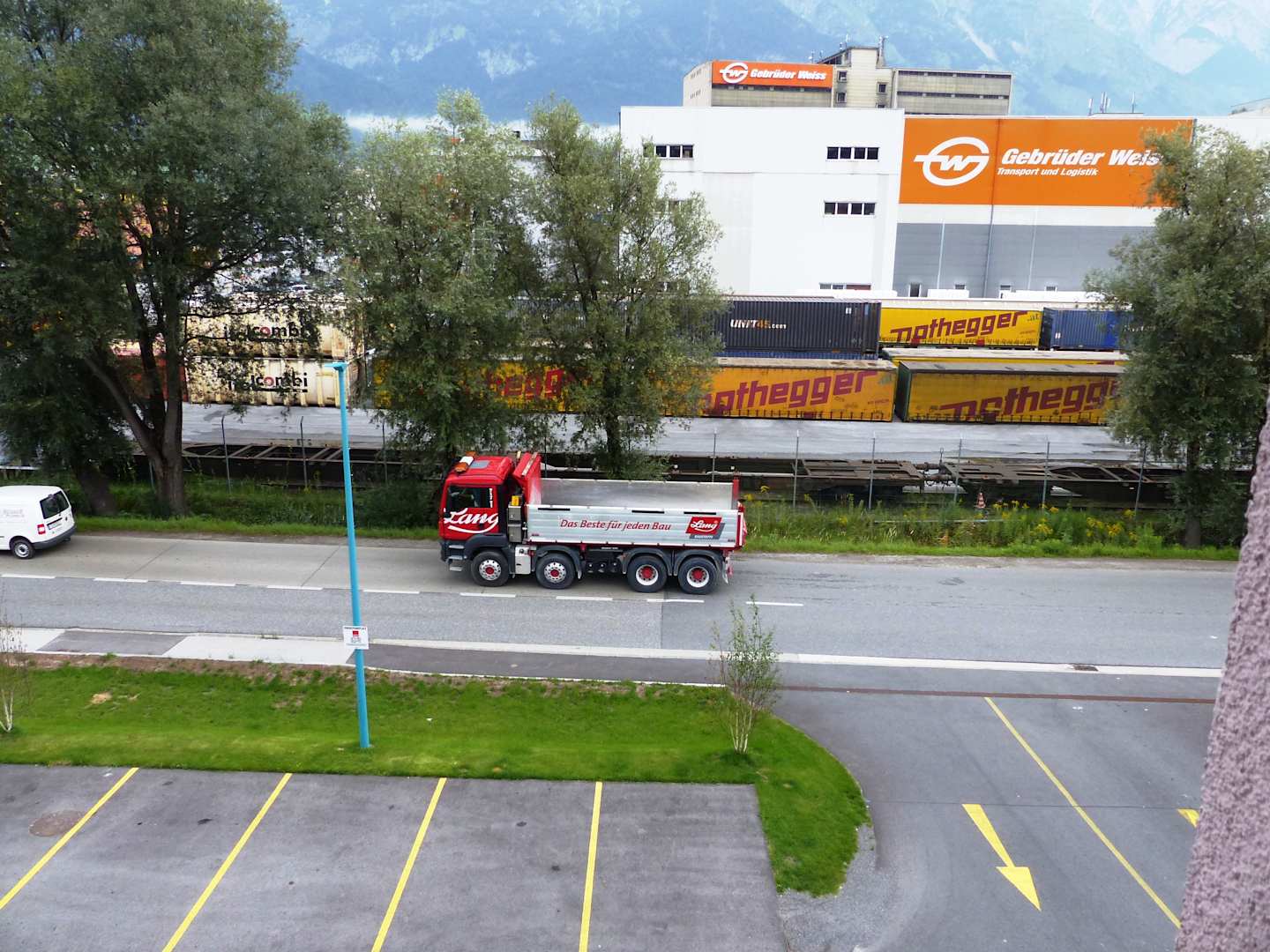 Blick aus dem Fenster zur Strasse und Containerbahnhof