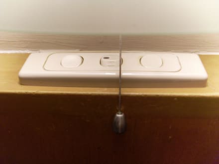 Gereinigte Lichtschalter beim Bettrechts und links des Doppelbettes sind die Lichtschalter. Diese waren genz verdreckt. Nach kuzer Reinigung mit nassem Kosmetiktuch und etwas Seife durch den Hotelgast sind diese wieder "ansehnlich" geworden. Vergleichen Sie mit dem Original bitte!