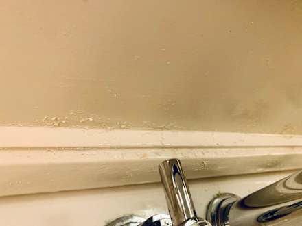 Abgesplitterte Farbe am Badezimmerspiegel