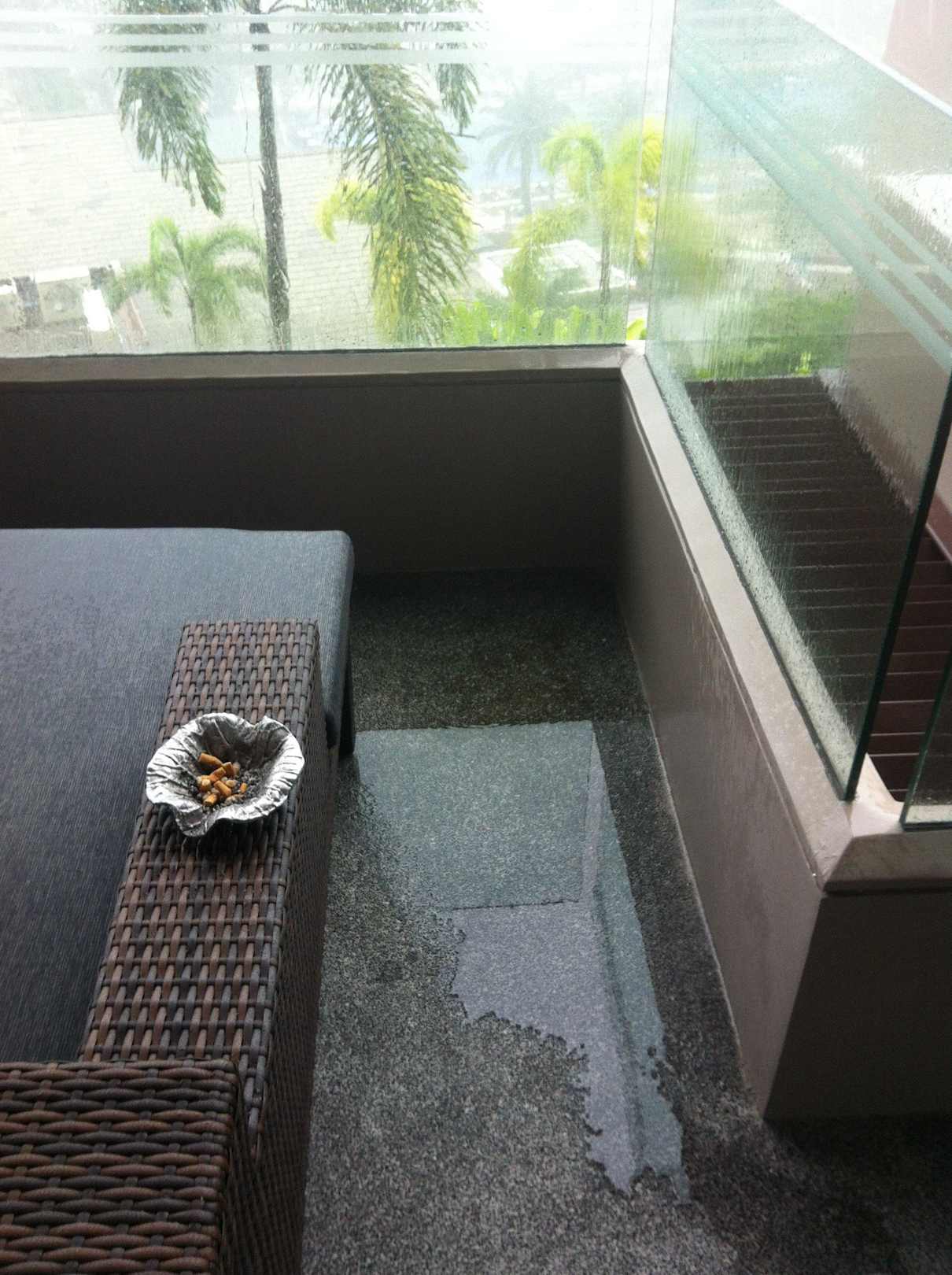 Pfütze bei Regen auf dem Balkon